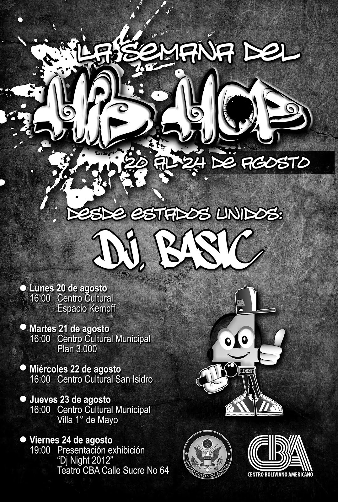 Esta vez tendremos al gran DJ Basic! en Bolivia, para los que no conocen a Basic, el ha tocado en bastantes eventos de B-Boying, uno de los eventos mas importantes que ha tenido su presencia es el Outbreak, sin duda, en cuanto a música para B-Boys este DJ sabe lo que hace!